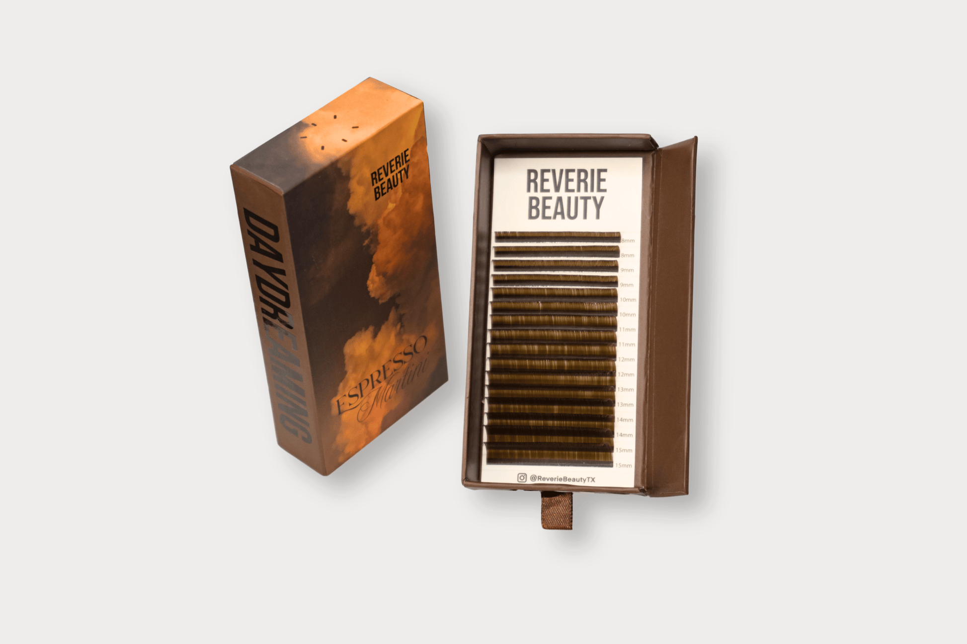 A lash tray with 16 soft, wispy rows of premium faux-mink extensions in natural brown tones — perfect for creating soft definition and seamless blends across lash styles. Lengths range from 8mm to 15mm.